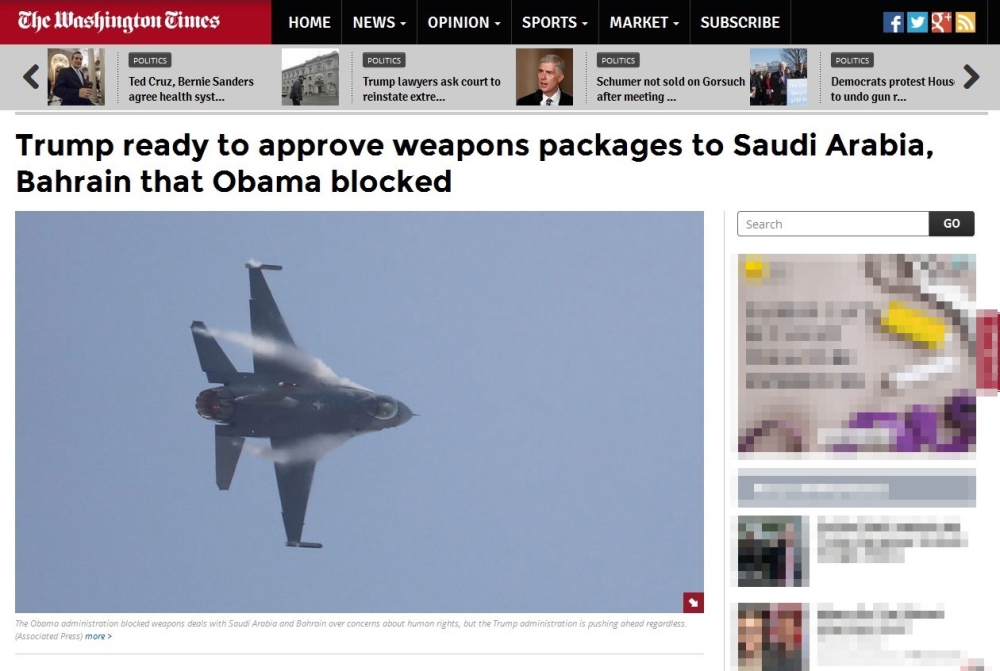 نقلت صحيفة «واشنطن تايمز» أمس (الأربعاء) عن مسؤولين أمريكيين ومصادر في الكونغرس أن إدارة الرئيس دونالد ترمب توشك على إقرار صفقة أسلحة ضخمة للسعودية كان سلفه باراك أوباما تمنع في إقرارها في آخر أشهر إدارته. ونسبت إلى