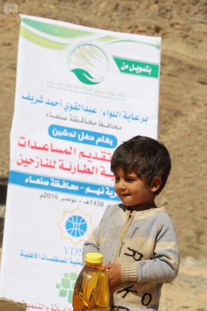 وزع مركز الملك سلمان للإغاثة والأعمال الإنسانية 30 ألف سلة غذائية على مديريات محافظة صنعاء، تحتوي احتياجات الأسرة من المواد الغذائية الأساسية، استفاد منها 180 ألف شخص من خلال شبكة النماء اليمنية للمنظمات الأهلية YDN، وذلك لتخفيف من معاناة المستفيدين ولتحسين الوضع المعيشي للنازحين والمتضررين .