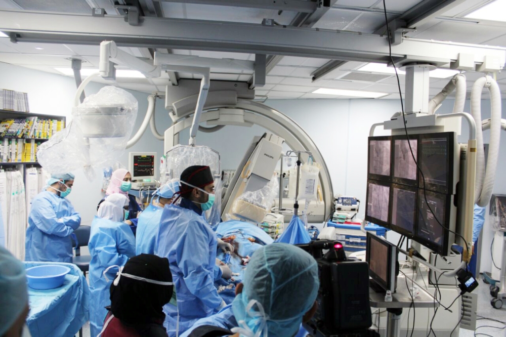 وقد قرر الفريق بالمركز إجراء عملية لسد القطع الدائري في الشرفة الأمامية للصمام الميترالي «الأبهري» بالقلب عبر تركيب جهاز دقيق يدعى (غالق الثقب بين الأذينين)، إذ يعد هذا الإجراء في المعمل من الحالات نادرة الحدوث والتي تم التعامل معها بواسطة فريق طبي متخصص وتكللت بالنجاح.