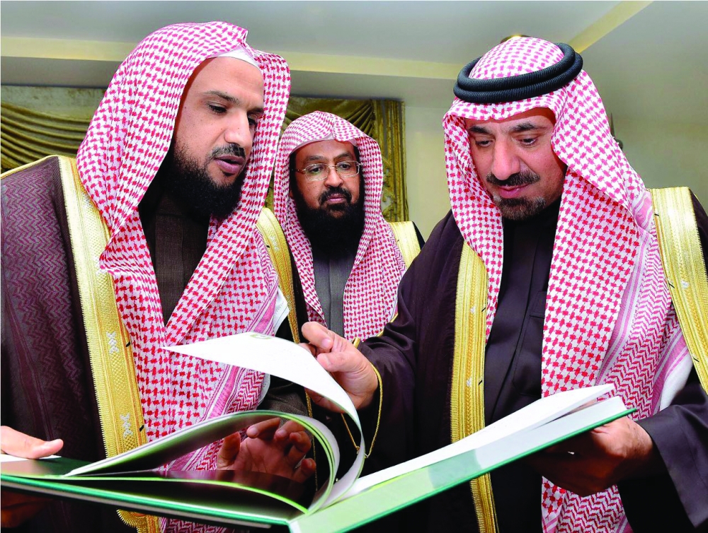 أمير نجران مطلعا على تقرير الدعاة في الحد الجنوبي. (عكاظ)