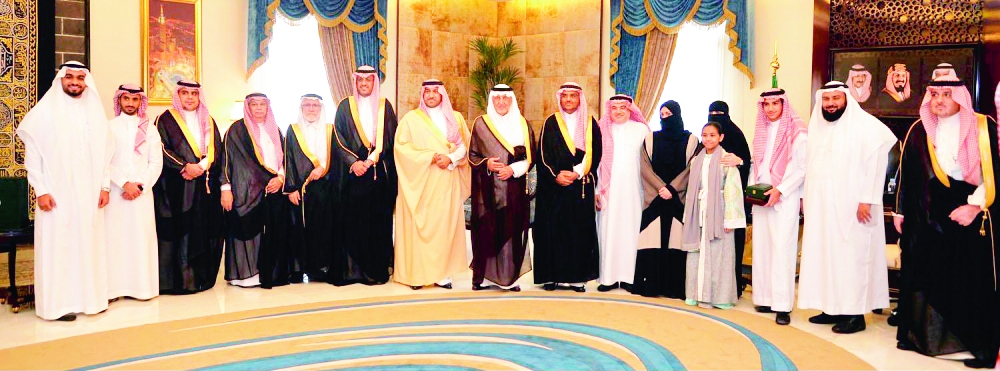 الأمير خالد الفيصل متوسطا منسوبي مؤسسة الملك عبدالعزيز ورجاله للموهبة والإبداع. (واس)