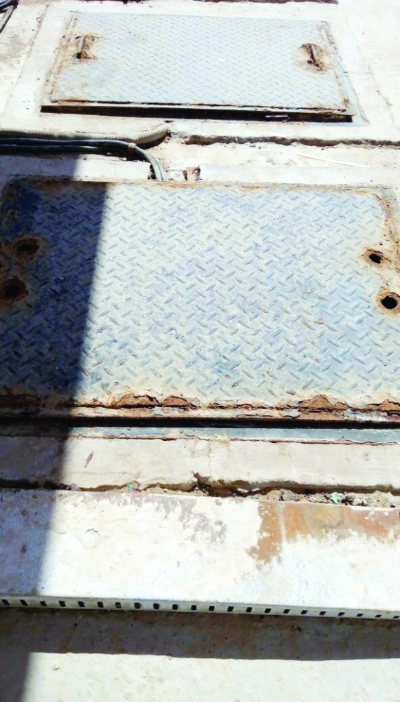 حفرة الصرف الصحي التي سقط فيها الطفل.