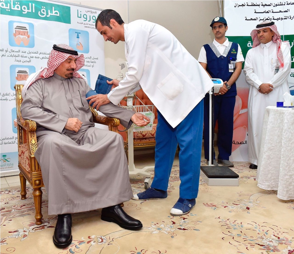 دشن صاحب السمو الأمير جلوي بن عبدالعزيز بن مساعد أمير منطقة نجران، نقطة الفحص والاستشارة الصحية بمقر الإمارة، لتقديم الخدمات الصحية للمراجعين والموظفين، في مجالات التحاليل المخبرية، والنظام الغذائي، والأمراض المزمنة، والتطعيمات، والإقلاع عن التدخين.