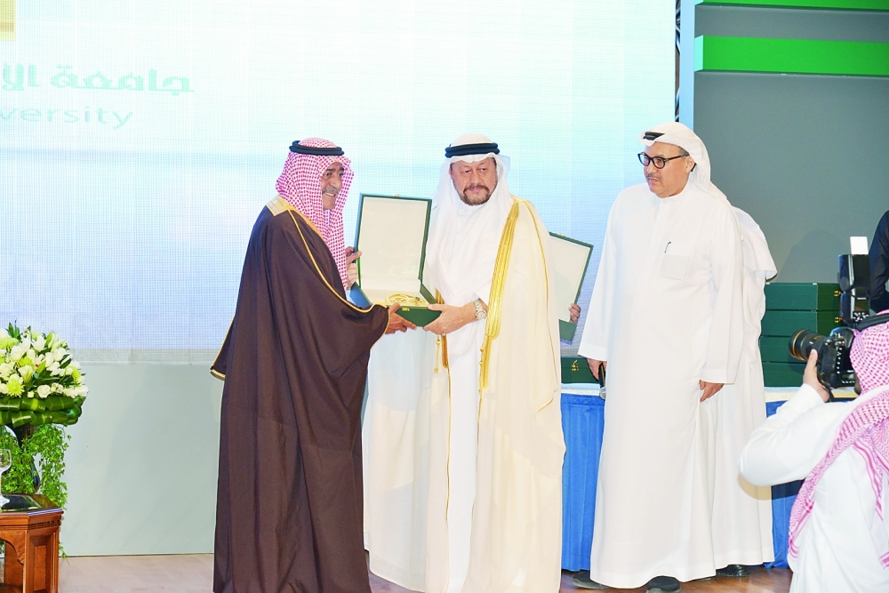 وفاءً منه لكل من دعم مشروع الجامعة كرّم الأمير مقرن بن عبدالعزيز آل سعود الداعمين بجوائز تقديرية، إذ شمل التكريم كلا من المهندس بكر بن لادن، وعبدالله صالح كامل (تسلمها نيابة عنه عمرو قيس الجليدان)، ومصطفى الشاعر، ومحمد حسين العامودي، وسعيد يوسف أمين، وعبدالرحمن شربتلي، وأسامة السيّد، والدكتور غسّان السليمان، وعبدالإله سالم بن محفوظ، وصالح التركي، وعماد عبدالقادر المهيدب، وعبدالرحمن شربتلي، وعبدالقادر البكري، وياسين عبدالله قاضي، ورامي أبوغزالة، ويحيى بن لادن، وعبدالرزاق بن داوود، وصالح بن لادن، وعبدالله بقشان، وإياد أمين مدني، وحسن محمد درّة، وحسين أبوداوود، وشرف حريري، ومازن إبراهيم رجب، وعبدالغني حسين.