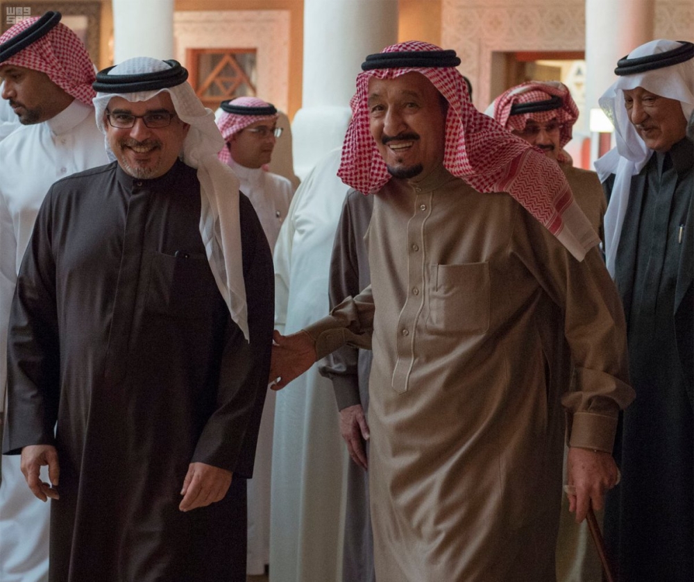 استقبل خادم الحرمين الشريفين الملك سلمان بن عبدالعزيز في قصر العوجا بالدرعية اليوم الأمير سلمان بن حمد آل خليفة ولي العهد نائب القائد الأعلى النائب الأول لرئيس مجلس الوزراء بمملكة البحرين والوفد المرافق له.