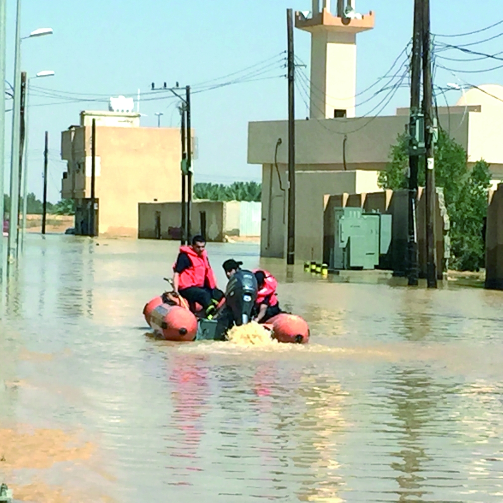 إجلاء «الدفاع المدني» للعوائل العالقة في الدلم. (تصوير: عبدالله الجريدان)