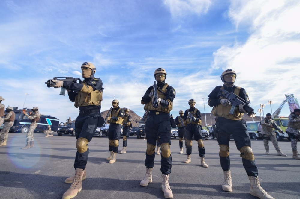 وأوضح العميد فارس أن مركز التدريب الخاص بقوات الطوارئ الخاصة سينطلق فيه تمرين (صولة الحق) العام القادم بحضور مديري الأمن العام وقادة القوات الخاصة للدول الخليجية والعربية والإسلامية، لافتاً إلى أن هذا التمرين يؤكد اهتمام المملكة بالدفاع عن الدين الحنيف ورعاية مقدساتها، مؤكداً أن شعب المملكة أثبت عبر تاريخه وحاضره الزاهر أعظم معاني المسؤولية الإسلامية والعربية في رعاية الإسلام والمسلمين، مبيناً أن المركز يتضمن منطقة للإسناد تشمل مهاجع لسكن الضباط والأفراد وتتسع لـ (2000) فرد وقابلة للزيادة، وميادين للرماية، ومهابط للطائرات تتسع لـ (10) طائرات، ومنطقة القُرى الهيكلية التي تحتوي على منصة لمشاهدة الاستعراضات والفرضيات، ومركز القيادة والسيطرة المجهز بأعلى وأحدث التقنيات ومرتبط بشبكة كمبيوتر وكاميرات لمراقبة جنبات المركز على مدار الساعة لرصد كافة التحركات، ويشارك في المركز مندوب من كل قطاع من القطاعات المشاركة في التمرين التعبوي، يقومون بإعداد تقارير يومية عن الحالة الأمنية لموقع التمرين وإرسالها للقائد المسؤول، إضافة إلى مركز إعلامي مجهز بكافة التجهيزات اللأزمة، مشيراً إلى أن جميع المشاركين في التمرين مُنحت لهم بطاقات إثبات مزودة بالباركود يتم التأكد من هوية الشخص من خلال المناوبين على البوابات، وجميع تلك البطاقات مرتبطة بمركز القيادة والسيطرة للتأكد من حمل الشخص للتصريح الذي يخوله للدخول والخروج لموقع المركز الذي يحظى باحترازات أمنية مشددة من خلال عمليات التفتيش وكاميرات المراقبة.