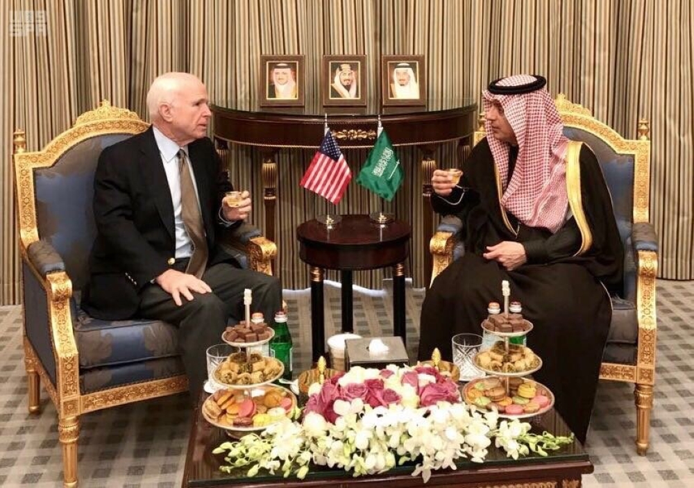 التقى وزير الخارجية عادل بن أحمد الجبير، في الرياض اليوم ، عضو مجلس الشيوخ الأمريكي السيناتور جون ماكين والوفد المرافق له.