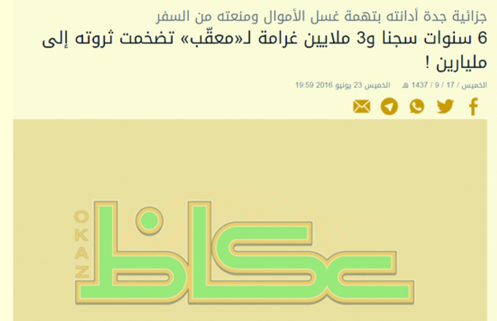 وبات الحكم المتضمن منعه من السفر ست سنوات عقب انتهاء فترة محكوميته نهائيا تطبيقا لنظام مكافحة غسل الأموال.