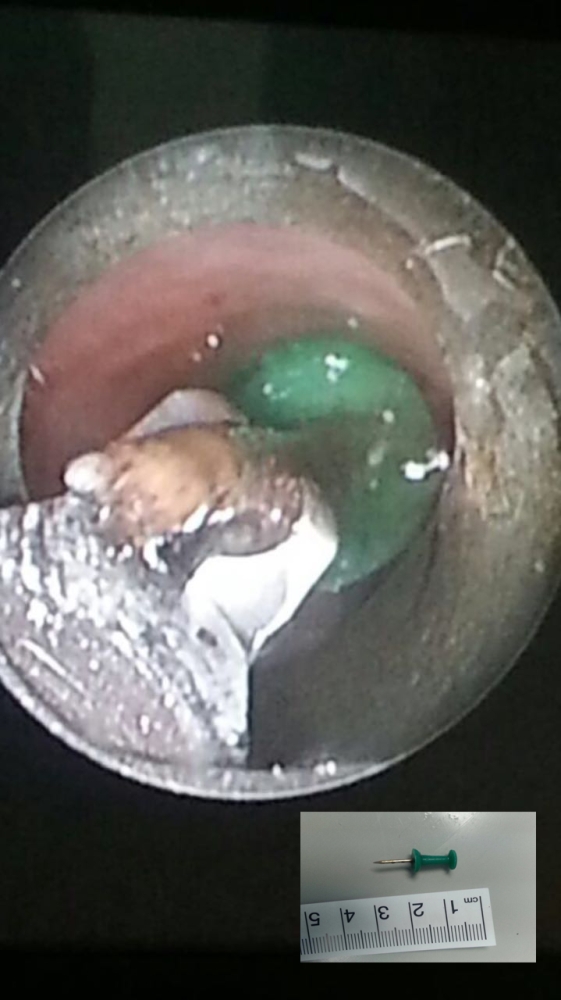 وكان طفل 8 سنوات أستنشق عن طريق الخطأ دبوس يستخدم لتثبيت الأوراق طوله 3 سم, أستقر في القصبة الهوائية اليمنى الماضي, وتم تحويله من مستشفى طبرجل العام إلى مستشفى الأمير متعب بن عبدالعزيز بسكاكا, وتم تنويمه بقسم العناية المركزة وحالته مستقرة, بعدها أجرى له فريق طبي من جراحة الأذن والحنجرة والجراحة الصدرية عملية منظار للقصبة الهوائية, وتم استخراج الدبوس دون وجود أي مضاعفات جراحية, وحالة الطفل الأن مستقرة.