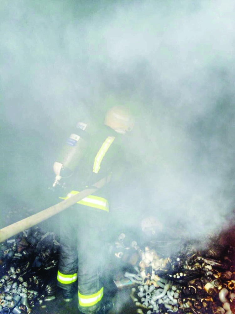 أحد افراد الدفاع المدني خلال إخماد الحريق.