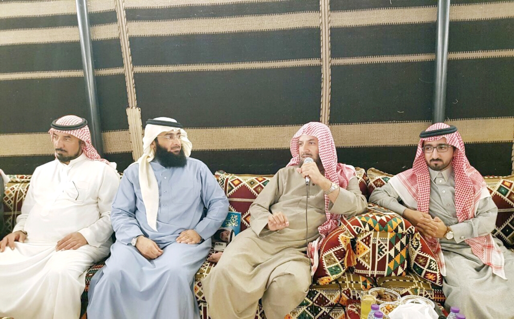 الشثري أثناء المحاضرة بديوانية الراجحي. (عكاظ)