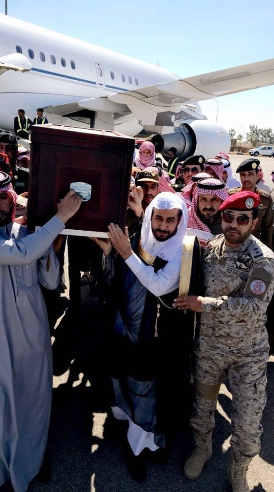 من جهة ثانية وصلت إلى مطار القريات امس، طائرة تحمل جثمان الشهيد وتقدم محافظ القريات عبدالله الجاسر المستقبلين إضافة إلى مدير شرطة المحافظة العميد مفضي الخميس ومدير المرور العقيد عبدالعزيز البريذع وقائد وحدة أمن المطار المقدم عبدالله الخضع وذوي وأقارب الشهيد .