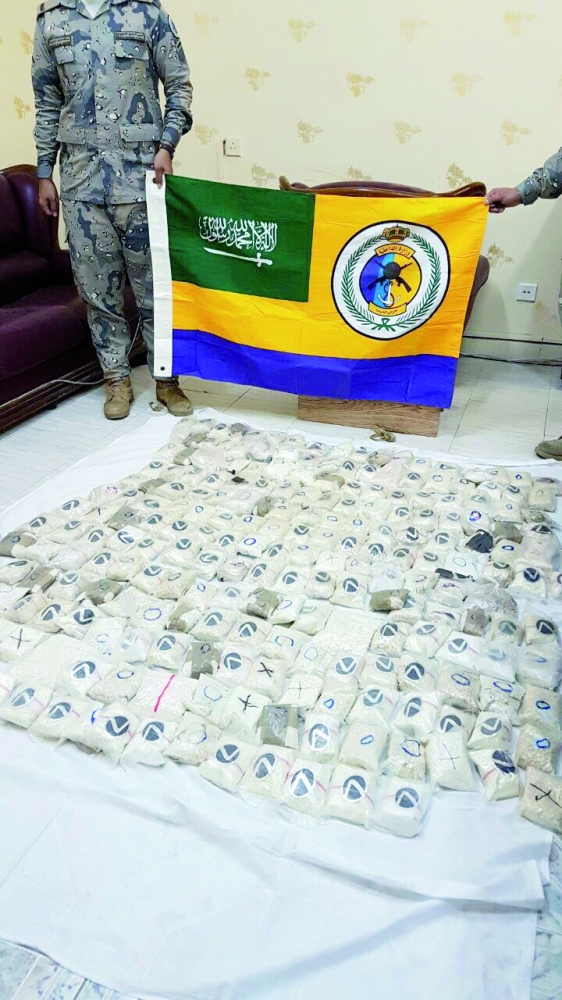 أحبطت دوريات حرس الحدود بمنطقة تبوك محاولة تهريب ٢٣٦٢٠٠ قرص أمفيتامين مخدر.