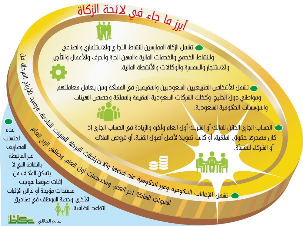 وأفصحت اللائحة التنفيذية التي حصلت «عكاظ» على نسخة منها، عن الأشخاص الخاضعين للزكاة، وهم من يمارسون نشاطا تجاريا بجميع صوره بما في ذلك المتاجرة بالسلع والخدمات، أو من يمارسون نشاطا استثماريا بجميع صوره بما في ذلك الاستثمار في الأوراق المالية سواء كان طويلة الأجل أو القصيرة، وسواء كان مصدرها قطاعا خاصا أو حكوميا أو كانت داخلية أو خارجية وكذلك الاستثمار بالخدمات والمساهمات التجارية.