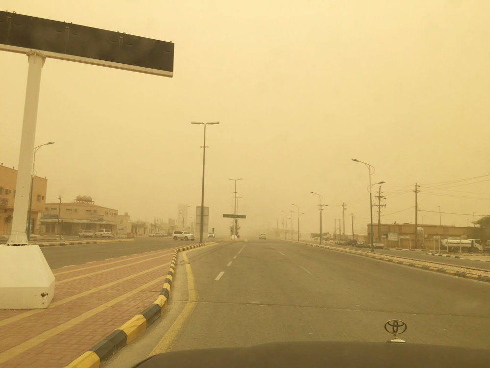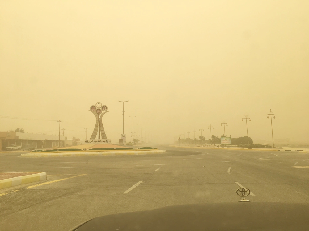فيما شهدت حفرالباطن حالة غبار أدت إلى تدني مستوى الرؤية الأفقية وبدأت الحالة منذ ساعات الصباح الأولى وكانت ذروتها في منتصف النهار.