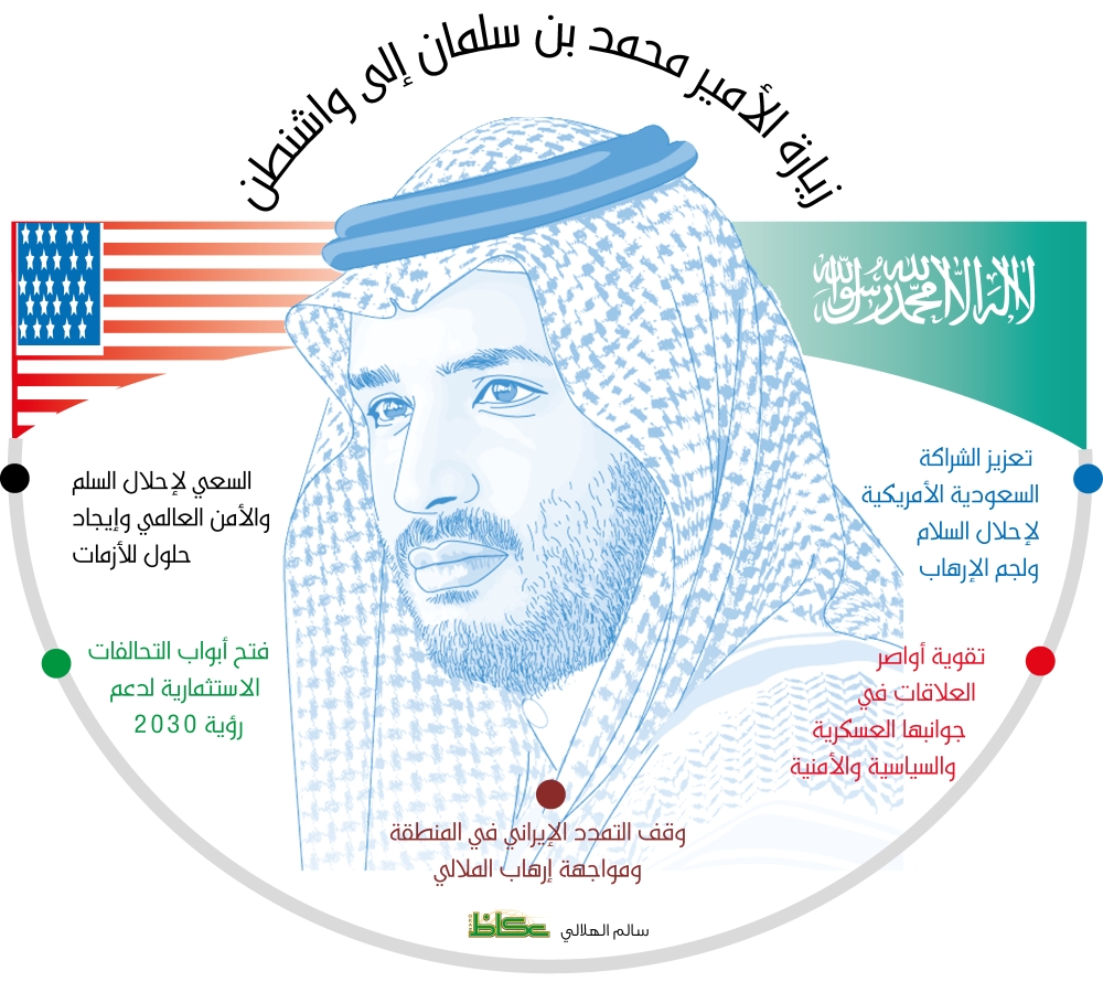 من جهتها، أفادت مصادر أمريكية رفيعة في تصريحات لـ «عكاظ» أن زيارة الأمير محمد بن سلمان إلى واشنطن تمت التهيئة لها بهدوء، خصوصاً أن هناك رغبة سعودية أمريكية مشتركة لتقوية الشراكة في حقبة إدارة ترمب، مشيرة إلى أن هناك قواسم مشتركة بين الرياض وواشنطن وتطابقاً في وجهات النظر حيال محاربة إرهاب «داعش» والتنظيمات الإرهابية الأخرى، ووقف التمدد الإيراني في المنطقة ولجم الإرهاب الطائفي الذي يقوده ملالي إيران وإحلال السلام في المنطقة.
