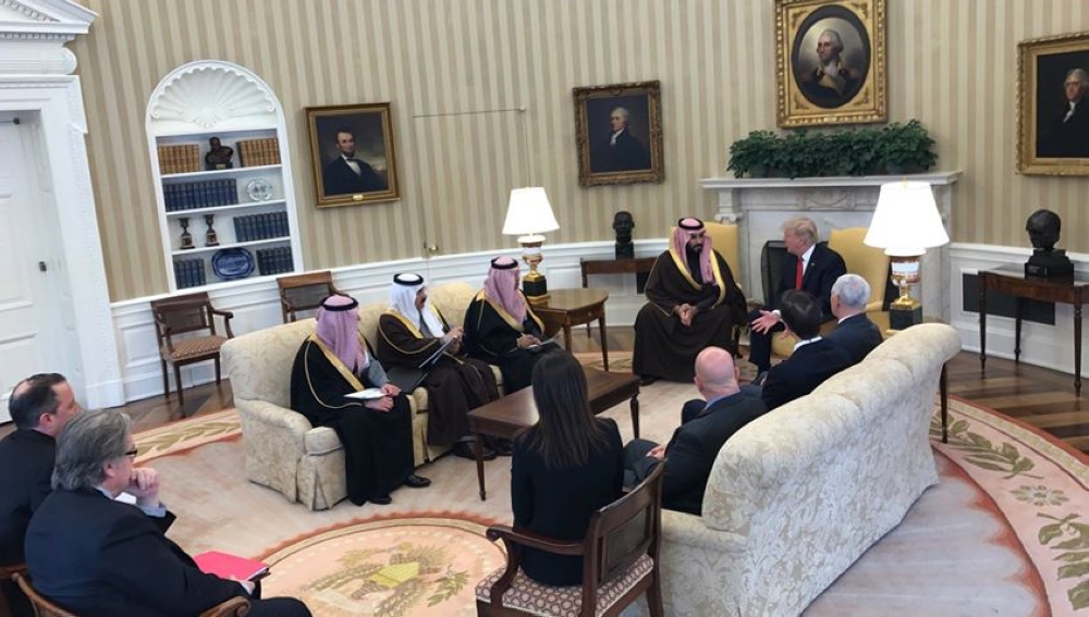 وكان ترمب استقبل في البيت الأبيض، الثلاثاء، ولي ولي العهد السعودي، وهي الزيارة الأولى لمسؤول سعودي وخليجي رفيع المستوى إلى البيت الأبيض في عهد ترمب.