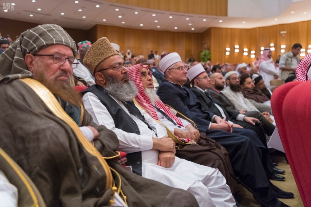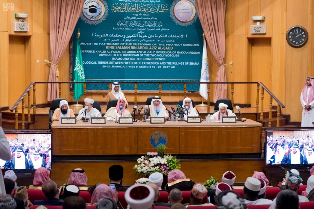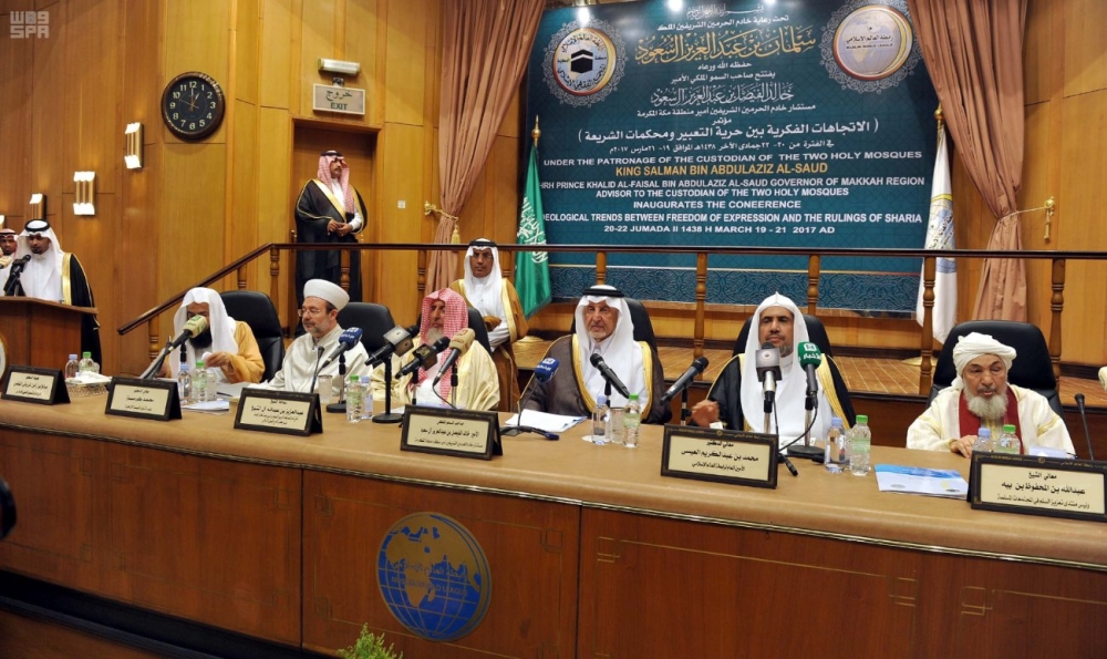 الحمد لله والصلاة على رسول الله [ أصحاب السماحة .. والفضيلة .. والمعالي .. والسعادة السلام عليكم ورحمة الله وبركاته يسعدني أن أنقل إلى جمعكم المبارك تحيات سيدي خادم الحرمين الشريفين الملك سلمان بن عبد العزيز، وقد شرفني بأن ألقي كلمته هذه في حفل افتتاح مؤتمركم الموقر . كما يسرني بداية أن أرحب بضيوفنا الأفاضل ، وهذا الحضور الزاخر بكم معاشر العلماء الراسخين في العلم ، وقد تداعيتم إلى أفياء أم القرى ، على أمر جلل للفصل فيه بما يحفظ على أمتنا رشدها ورشادها . الإخوة الأكارم .. (إن حرية التعبير التي يناقش مؤتمركم الاتجاهات الفكرية بينها وبين محكمات الشريعة ، إنما هي كما هو معلوم بالضرورة فرع أصيل من المفهوم الكلي للحرية (المشروطة) في الإسلام ، حيث خلق الله الناس أحراراً ، وتفضل عليهم بنعمه فأكرمهم ، قال تعالى : " وَلَقَدْ كَرَّمْنَا بَنِي آدَمَ وَحَمَلْنَاهُمْ فِي الْبَرِّ وَالْبَحْرِ وَرَزَقْنَاهُم مِّنَ الطَّيِّبَاتِ وَفَضَّلْنَاهُمْ عَلَىٰ كَثِيرٍ مِّمَّنْ خَلَقْنَا تَفْضِيلًا " (70 الأسراء) . ولا شك أن من كرامة الإنسان أن يكون من حيث الأصل ، حراً َ في التصرف والاختيار ، كما أن شريعتنا الإسلامية الغراء قضت بحفظ دم الإنسان وماله وعرضه ، فحررته من كل عبودية عدا عبوديته لخالقه ، شريطة التزام الإنسان بالضوابط التي شرعها سبحانه وتعالى بما يحقق صلاح حاله في دنياه وأخراه.