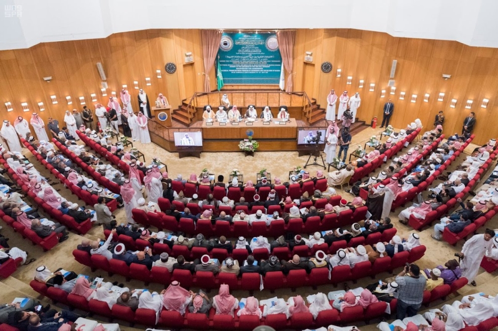 وكان الحفل الخطابي المعد بهذه المناسبة قد بدأ بتلاوة آيات من القرآن الكريم ثم ألقى الأمين العام للمجمع الفقهي الإسلامي الدكتور صالح بن زابن المرزوقي كلمة قال فيها إن الإسلام ركيزة أساس في بناء الحياة البشـرية السوية، التي تحقق العدالة والكرامة والأمن والتنمية ، وكل ما يصبو إليه البشـر من حياة طيبة هنية، وهو في ثوابته لا يتعارض مع منتجات العصـر، بل إنه يشجع على تحصيل الرقي المادي، والتقدم الحضاري، والإسهام في بناء الإنسانية وعمارة الأرض. وأكد أن هذه الدولة المباركة - بحمد الله - قد قامت منذ تأسيسها على خدمـة الإسلام والمسلمين، وتبني قضاياهم، حيث وقف ملوك هذه البلاد ضد التيارات الفكرية المنحرفة التي عصفت ببعض الدول العربية والإسلامية في وقت من الأوقات، كما حاربوا موجات الغلو والتطرف والإرهاب، مشيرا إلى أنه في هذا العصـر برز ظهور بعض الشعـارات التي تقوم على الإعراض عن دين الله، وتشيع الانفلات من الدين والقيم والأخلاق، واستهداف فئات من المسلمين.