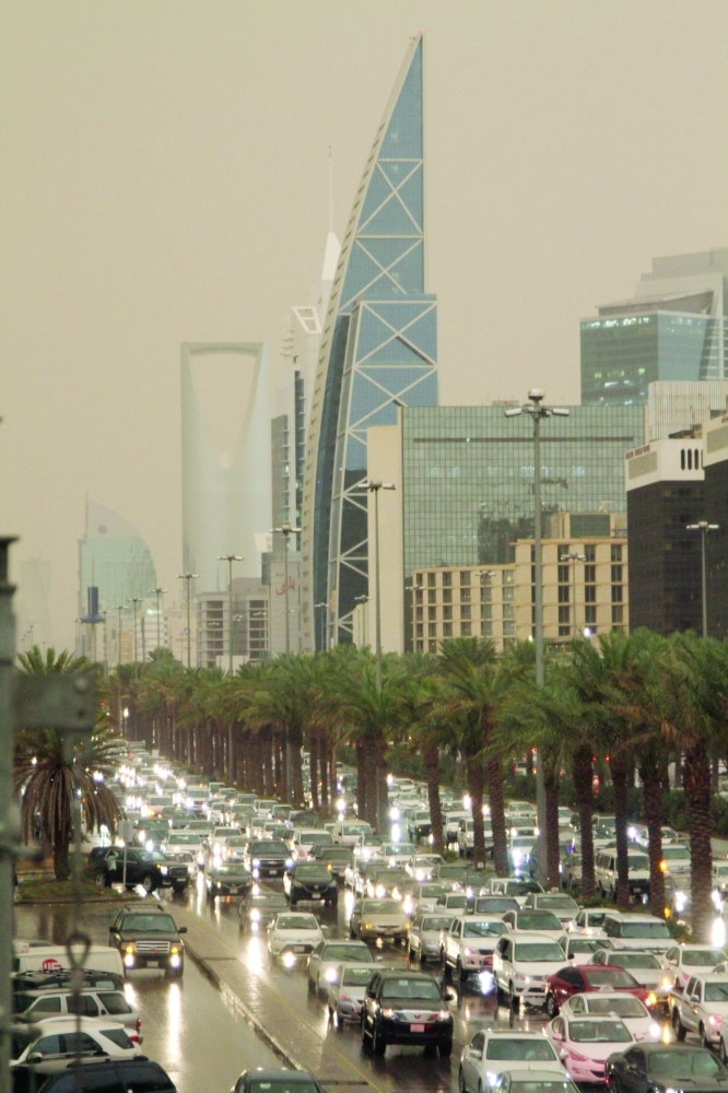 ارتباك الحركة المرورية في الرياض. (عكاظ)