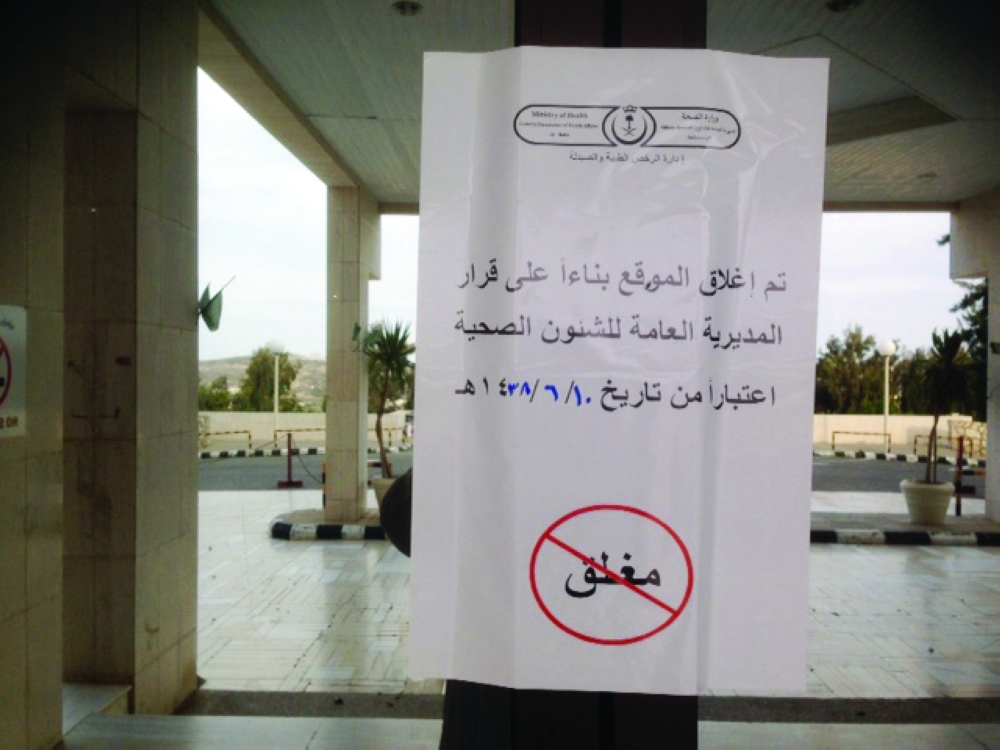 إشعار بالإغلاق من قبل مديرية الشؤون الصحية بالمنطقة.