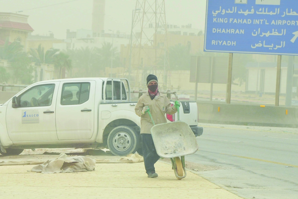 «عكاظ» تواصلت مع المتحدث باسم وزارة العمل والتنمية الاجتماعية خالد أبا الخيل، لسؤاله عن موقف الوزارة من ذلك، فأجاب بأنه مشغول في اجتماع وطلب إرسال السؤال عبر تطبيق «واتساب» للرد والتعليق. فيما أكد مصدر لـ«عكاظ» أن نظام العمل والعمال المعمول به يؤكد أنه متى ما وقع ضرر على العامل أثناء أدائه لمهمات عمله فإنه غير ملزم بأدائه، وعلى الجهة التي تشرف عليه أن تجد الوسائل أو البدائل التي يمكن أداء العمل من خلالها دون إلحاق الضرر بالعامل. في السياق نفسه، شهدت المنطقة الشرقية منذ ساعات الصباح الأولى يوم أمس الأول حالة غبار استمرت لفترات المساء، وتسببت في تعليق الدراسة يوم أمس في مدارس المنطقة الشرقية بقرار إدارة التعليم المبني على المعطيات التي قدمتها الجهات المعنية منذ ليلة أمس الأول.