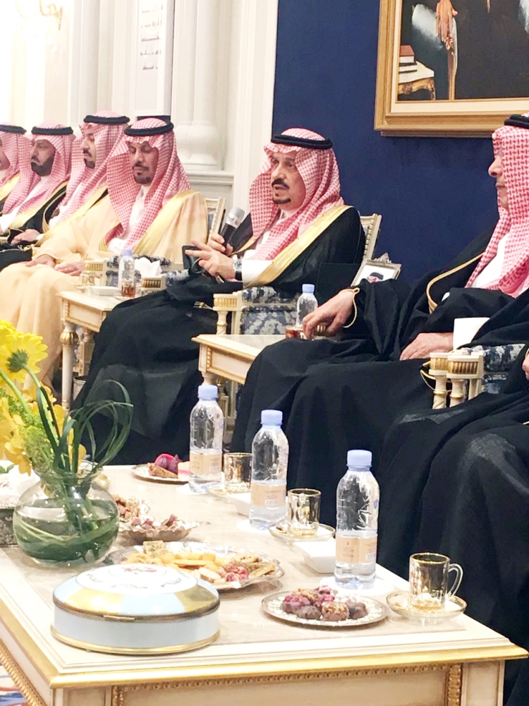 أمير الرياض يستمع إلى مداخلات ممثلي وسائل الإعلام.