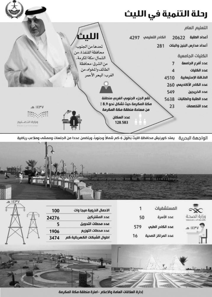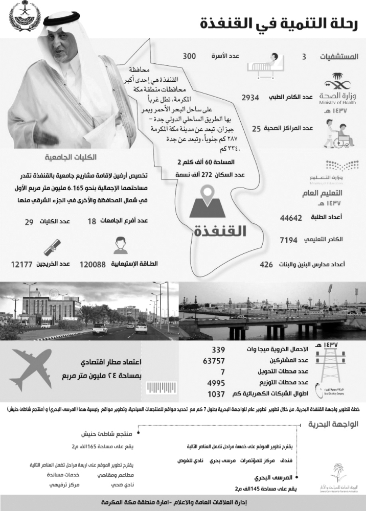 يشار إلى أن جولات الفيصل على محافظات المنطقة لم تنقطع منذ توليه إمارة المنطقة، وشهدت هذه الفترة ارتفاع عدد المحافظات إلى 17 محافظة حظيت بالكثير من المشاريع التنموية في كافة الجوانب.