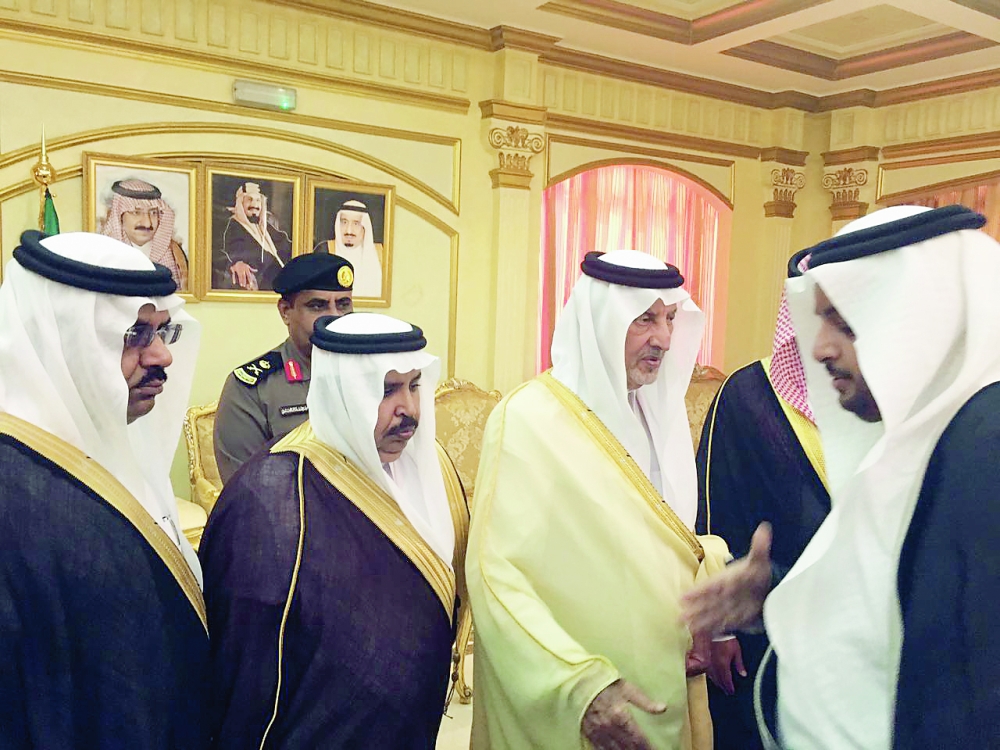 واستقبل الأمير خالد الفيصل بمقر المحافظة مشايخ القبائل وجمعا من المواطنين والأهالي.