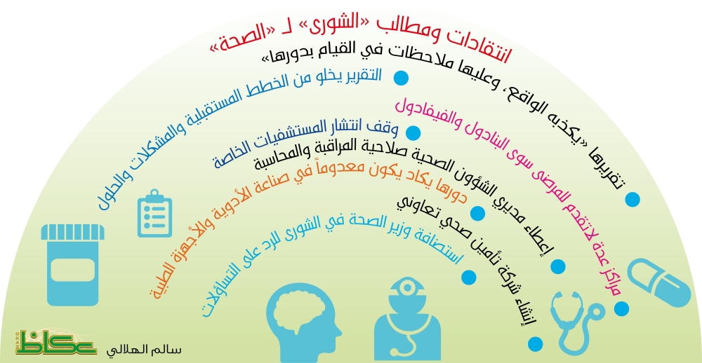 انتقد أعضاء في مجلس الشورى أمس (الثلاثاء) تقرير وزارة الصحة، لافتين إلى أن تقريرها «يكذبه الواقع الذي نعيش فيه، وعليها الكثير من الملاحظات في القيام بدورها».