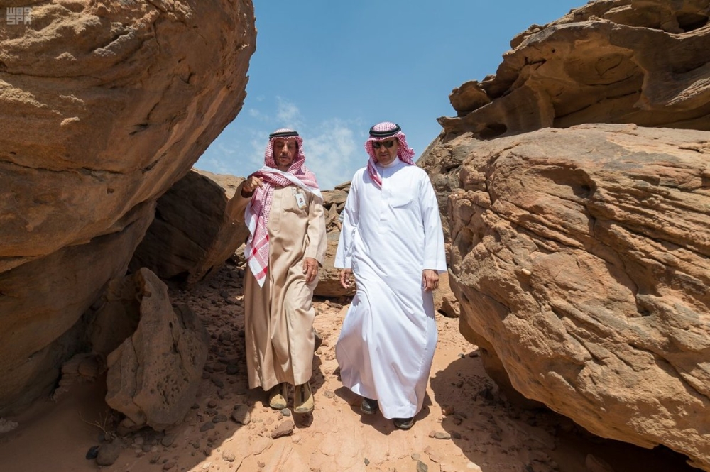واستطلع الأمير سلطان والفريق المختص من الجو بطائرة الهليكوبتر الموقع ومساحته وتضاريسه ومكوناته قبل أن يتفقد الموقع ميدانياً، مستمعاً من المختصين إلى شرح عن الموقع وما يحتوي عليه من رسوم صخرية تعكس حقبا زمنية عاشها إنسان الجزيرة العربية. وأثنى رئيس الهيئة العامة للسياحة والتراث الوطني على الجهود التي يقودها الفريق العلمي في عمليات الاستكشاف، كما أثنى على جهود المواطنين ووعيهم في المحافظة على آثار هذه المنطقة المهمة، وشدد على أن المواطن هو الحارس الأمين لهذا الوطن وتراثه من خلال تعاونه الكبير بالإبلاغ عن كل ما قد يهدد التراث الحضاري في المملكة.