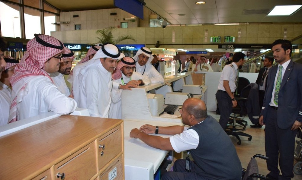 وتفقد مدير عام الخطوط الجوية العربية السعودية المهندس صالح بن ناصر الجاسر اليوم سير العمليات التشغيلية وانسيابية الحركة والتشغيل لرحلات "السعودية" بمطار الملك عبدالعزيز الدولي بجدة , كما تفقد مواقع الخدمة في صالتي الوصول والمغادرة ومنصات الخدمة لذوي الاحتياجات الخاصة وكبار السن والضيوف الواصلين وأجهزة الخدمة الذاتية، كما اطلع على الآلية الجديدة لتصعيد الضيوف إلى الطائرات وفق مناطق الإجلاس المحددة في بطاقة صعود الطائرة والمنطقة المخصصة لاستلام أجهزة الحواسيب المحمولة واللوحية وتغليفها وشحنها في حاوية خاصة إلى وجهة الوصول في الرحلات المتجهة للولايات المتحدة والمملكة المتحدة .