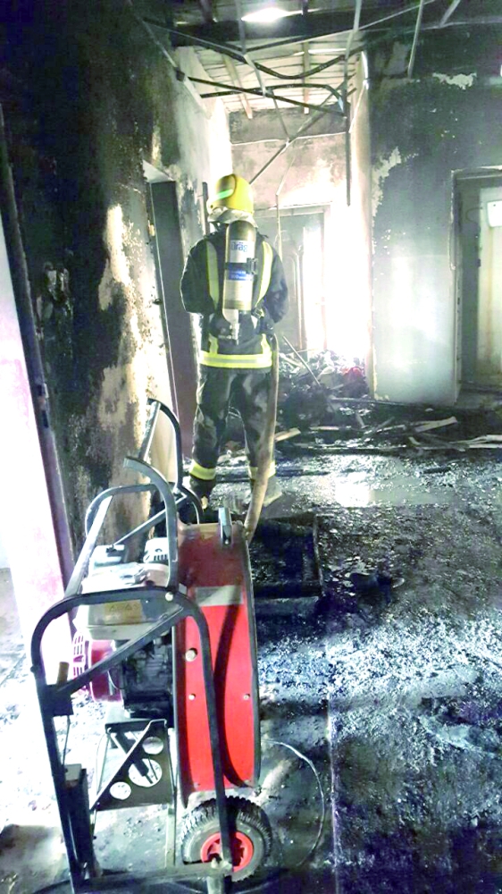 أحد رجال الدفاع المدني عقب إخماد الحريق.