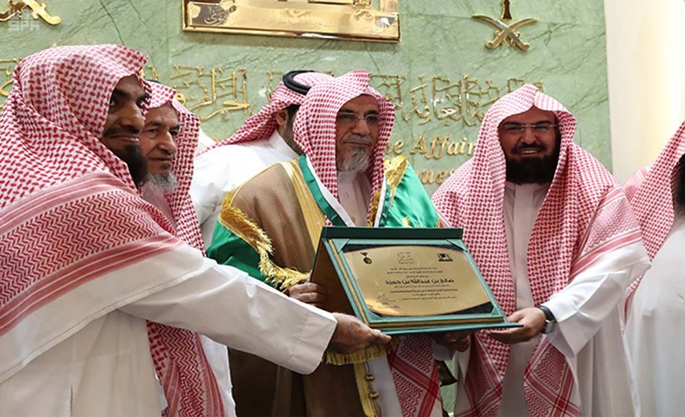 من جانبه ثمن الشيخ الدكتور صالح بن حميد جهود الرئاسة في خدمة الحرمين الشريفين وهذا التكريم وتشجيع العلماء وطلبة العلم، وقال: "هذا ما لمسناه من دعم معالي الشيخ السديس المستمر فجزاه الله عنا كل خير ووفقه وسدد خطاه".