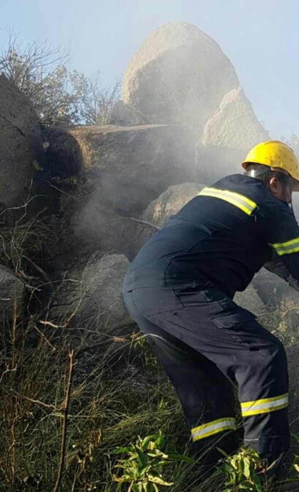 أخمدت أجهزة الدفاع المدني بمنطقة عسير حريقًا شب في أشجار الطلح وأعشاب وشجيرات بمحافظة تنومه في منطقة جبلية.