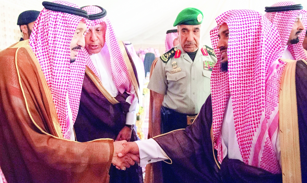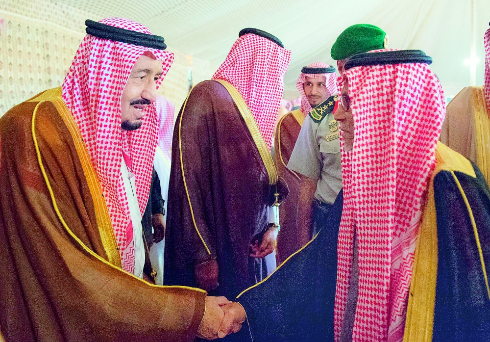استقبل خادم الحرمين الشريفين الملك سلمان بن عبدالعزيز في روضة خريم أمس (السبت) رؤساء ومديري الإدارات الحكومية ورؤساء المراكز في محافظة رماح، وجمعاً من أهالي المحافظة الذين قدموا للسلام عليه وتهنئته بسلامة الوصول.