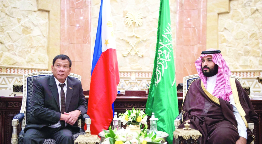 من جهة ثانية، اجتمع ولي ولي العهد في روضة خريم أمس مع رئيس جمهورية الفلبين رودريغو روا دوتيرتي، وجرى خلال الاجتماع استعراض علاقات التعاون الثنائية القائمة بين البلدين وفرص تطويرها، إضافة إلى عدد من المسائل ذات الاهتمام المشترك.