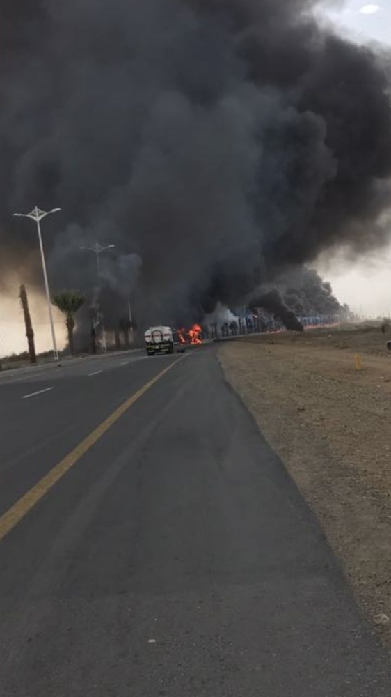 جازان: إصابة 5 من أفراد الدفاع المدني في احتراق ناقلة بنزين