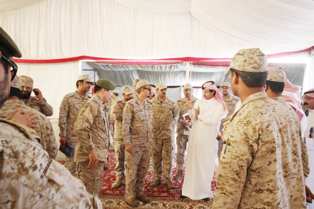 اللواء البناوي وعدد من منسوبي القوات المسلحة في موقع المعرض. (عكاظ)