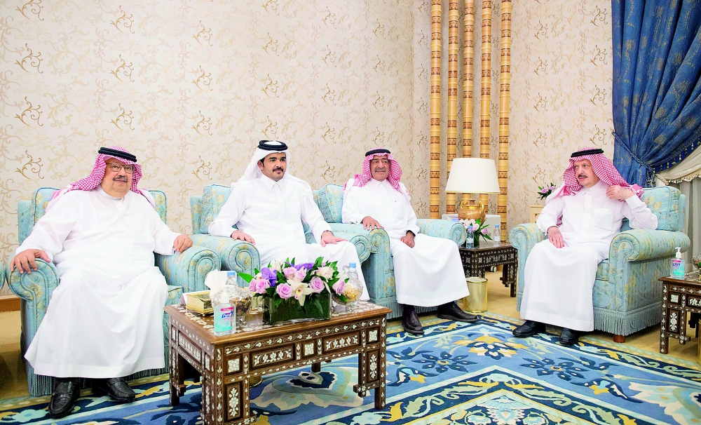 استقبل خادم الحرمين الشريفين الملك سلمان بن عبدالعزيز في روضة خريم أمس (الخميس) ملك مملكة البحرين الملك حمد بن عيسى آل خليفة، وولي عهد دولة الكويت الشيخ نواف الأحمد الجابر الصباح، ورئيس أمناء مؤسسة زايد للأعمال الإنسانية رئيس مجلس أبوظبي الرياضي بالإمارات العربية المتحدة الشيخ نهيان بن زايد آل نهيان، ورئيس اللجنة الأولمبية بدولة قطر الشيخ جوعان بن حمد آل ثاني، ووزير الشؤون الرياضية بسلطنة عمان الشيخ سعد بن محمد السعدي، الذين قدموا لحضور الحفلة الختامية لمهرجان الملك عبدالعزيز للإبل.