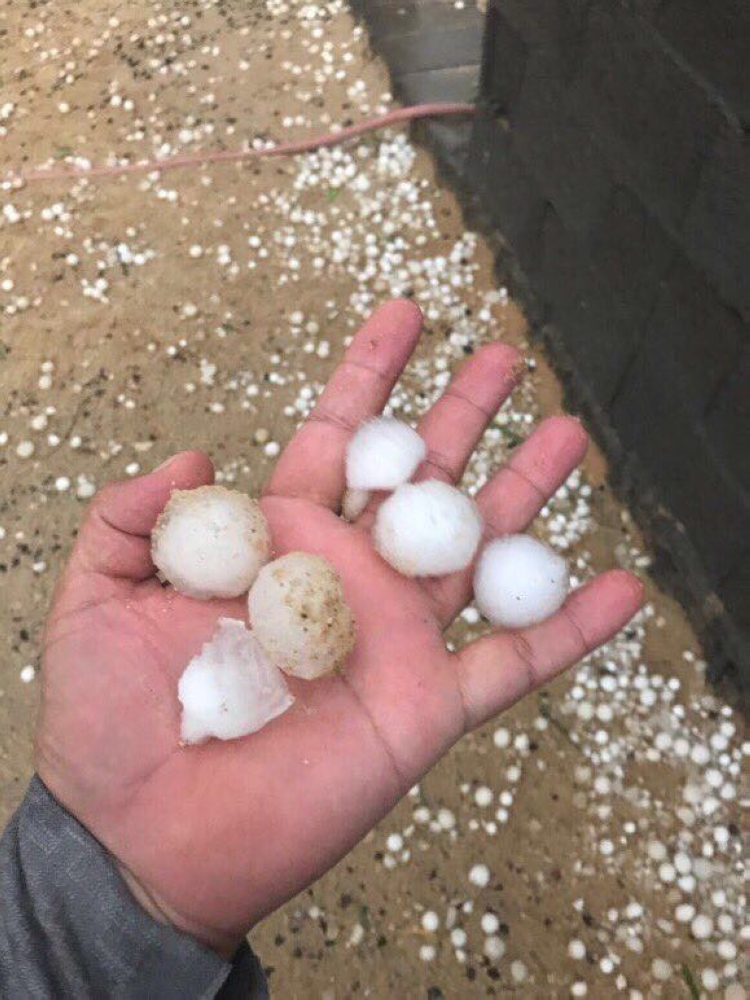 وتداولت مواقع التواصل مقاطع وصوراً تُظهر سقوط حبات برد كبيرة على مركز الحديثة الحدودي التابع لمحافظة القريات، تسببت في تكسير زجاج بعض السيارات.