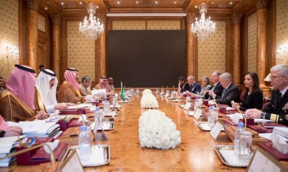 اجتمع صاحب السمو الملكي الأمير محمد بن سلمان بن عبدالعزيز ولي ولي العهد النائب الثاني لرئيس مجلس الوزراء وزير الدفاع في مكتبه بالرياض اليوم مع وزير الدفاع الأمريكي جيمس ماتيس.