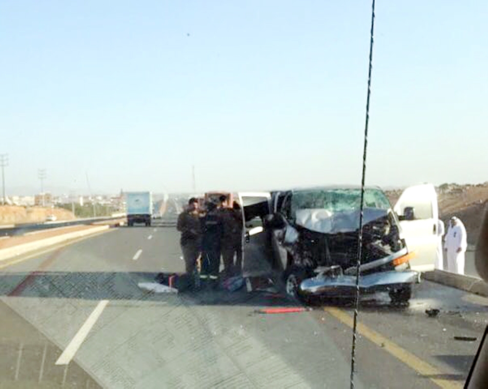 مركبة المعلمات كما بدت بعد الحادث. (عكاظ)
