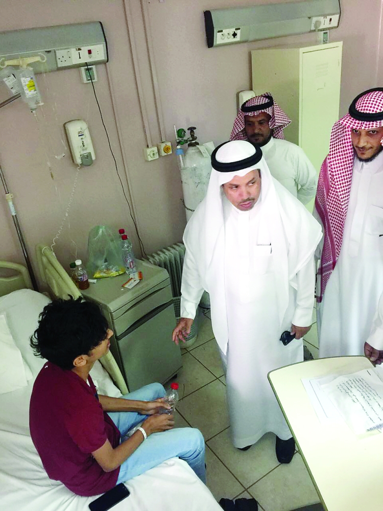 الفيفي مطمئنا على أحد المرضى. (عكاظ)