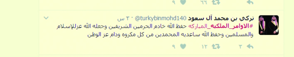 بدر السنبل(@badrAlsunbul) قال: «ألف مبروك للجميع الأوامر_الملكية وما تحمله من بشائر خير، اللهم أدم علينا وعلى بلادنا الخير والعافية». فيما عبدالله المديفر(@almodifer) عن سعادته بتلك الأوامر فقال: «ما رفعه الأمير #محمد_بن_سلمان للملك بإعادة البدلات والمزايا المالية للموظفين يدل على شجاعة وحكمة». واختتم تغريدته بالشكر لقيادتنا.