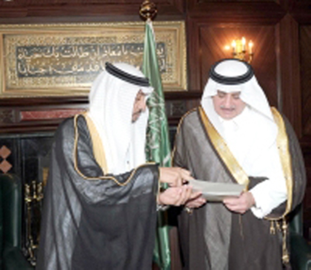 الأمير فهد بن سلطان يتسلم تقريرا عن جامعة تبوك من مديرها العنزي.