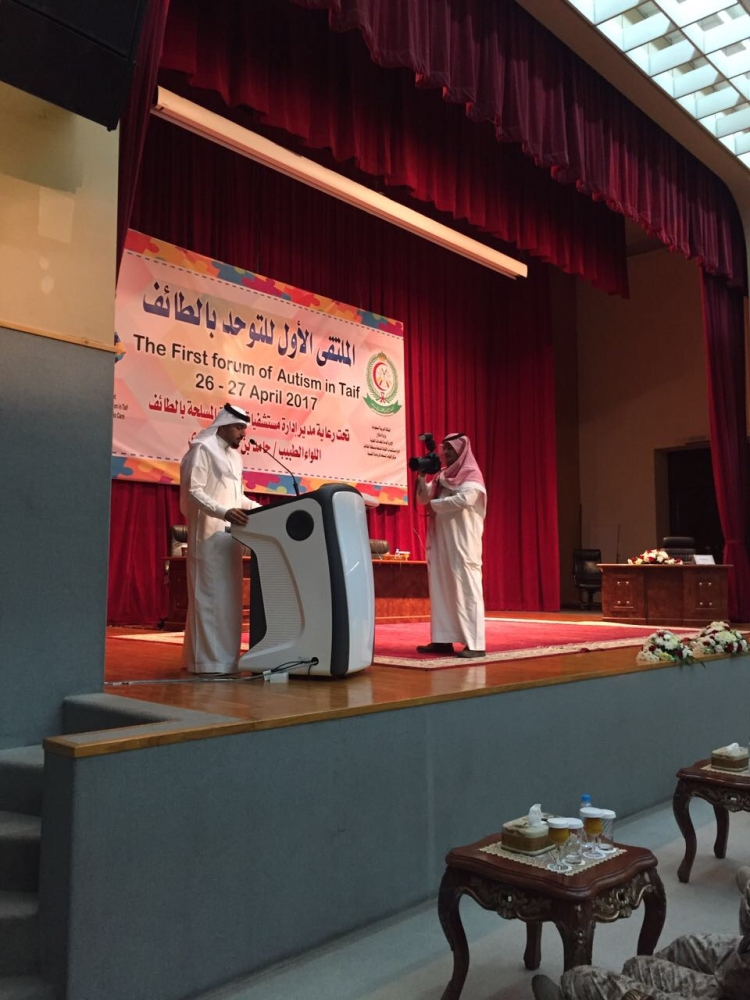 وذكر في كلمته أيضا نفخر بأن مركز القوات المسلحة للرعاية النفسية بالطائف كان له السبق في هذا البرنامج فقد تولى المبادرة والاهتمام بموضوع التوحد. وذكر لاحقا في أن المؤتمر سوف يناقش العديد من المواضيع الحديثة في هذا الإطار وكيفية تطبيقها, وكذالك يركز هذا الملتقى على دور مراكز التوحد العاملة تحت مظلة المؤسسات الصحية واختلاف عملها عن تلك المراكز العاملة تحت مظلات المؤسسات التعليمية.