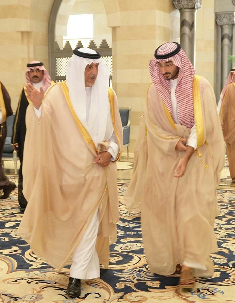 في بادرة غير مستغربة، استقبل مستشار خادم الحرمين الشريفين أمير منطقة مكة المكرمة الأمير خالد الفيصل، في الصالة الملكية بمطار الملك عبدالعزيز الدولي بجدة، اليوم (الخميس)، نائب أمير منطقة مكة المكرمة الأمير عبدالله بن بندر بن عبدالعزيز.