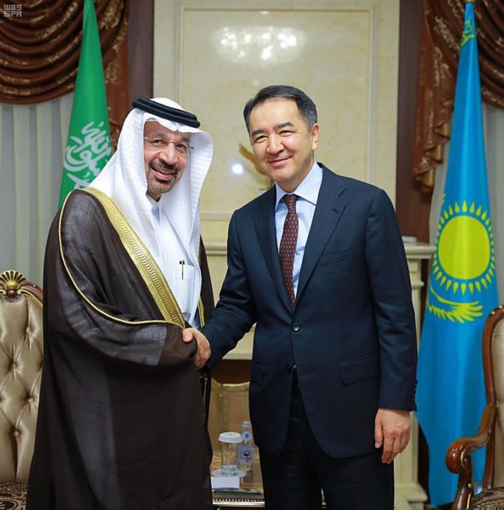 وبين دولة رئيس الوزراء أن الحكومة الكازاخستانية تتطلع إلى تفعيل الشراكات والاتفاقيات الهادفة إلى تعزيز التعاون بين البلدين في مجالات الطاقة، والصناعة , وإلى تقوية التوافق بين البلدين فيما يخص أسواق البترول العالمية. وعقب لقاء دولة رئيس الوزراء، انتقل الوفد السعودي إلى وزارة الطاقة الكازاخستانية، حيث ناقش المهندس الفالح، مع نظيره الكازخستاني كانات بوزومباييف موضوعاتٍ مُشتركةً عدة، على رأسها تمديد العمل باتفاقية خفض الإنتاج التي أُبرمت بين أعضاء أوبك ومنتجين آخرين من خارجها.